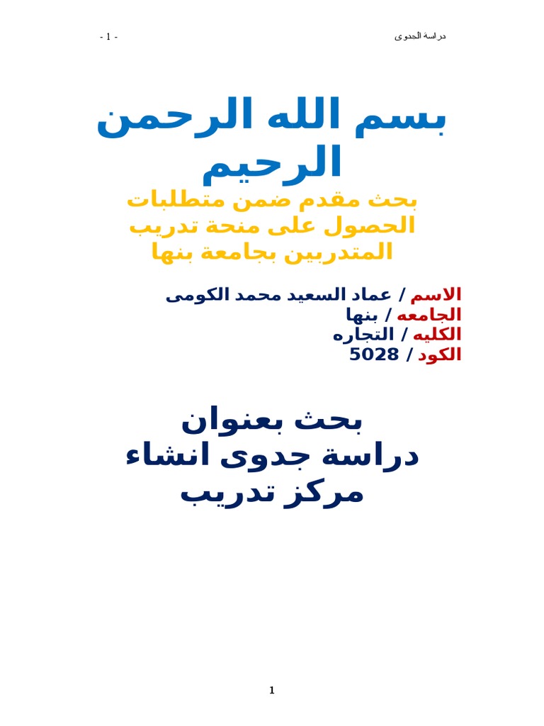 دراسة جدوى إنشاء مركز تدريب أكاديمي مطابق للمصدر
